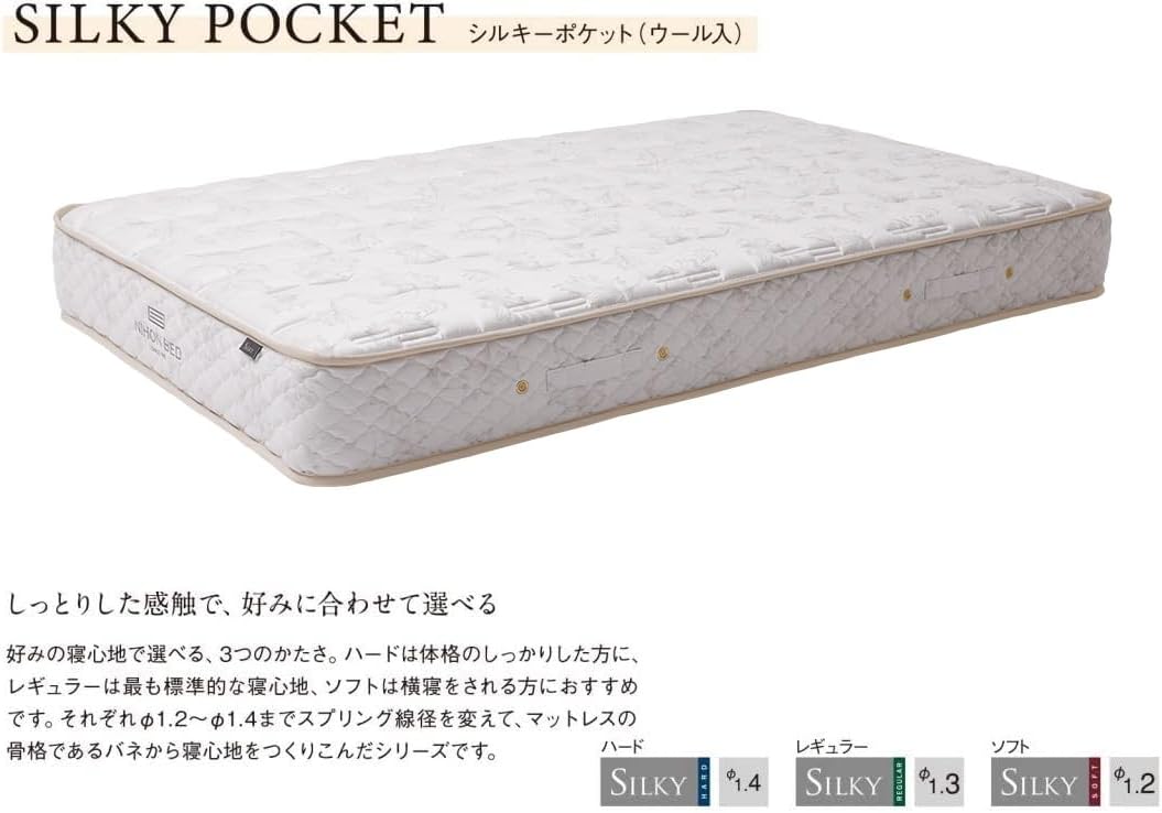 日本ベッド マットレス シルキーポケット (ウール入) SILKY POCKET NIHON BED 選べるかたさ 寝心地 国産 日本製 ポケットコイル (レギュラータイプ 11334, シングル S)