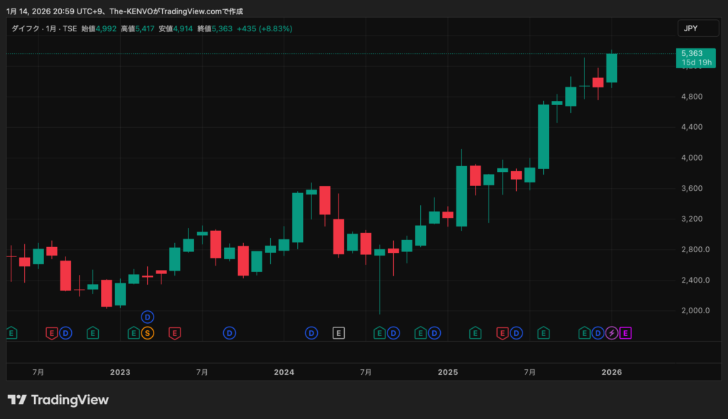 【ダイフク6383 月足】