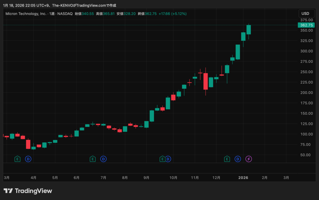 半導体メモリ市場の主役として2025~2026年にかけて急伸を遂げるマイクロン・テクノロジー(MU)。