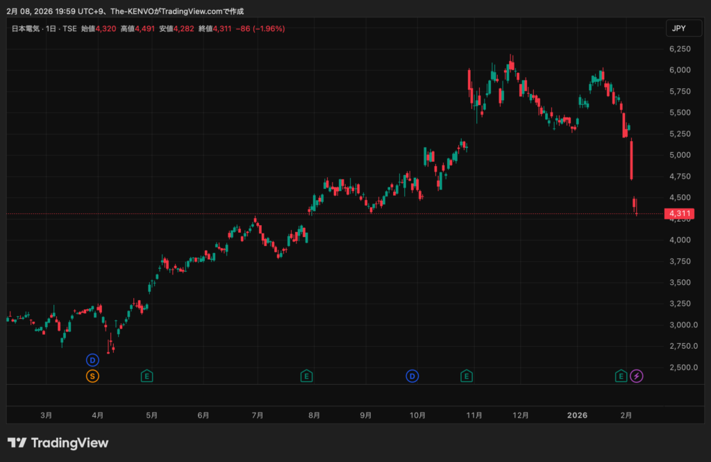 株価だけを見れば、NECはここ数ヶ月、明確な下落トレンドにある。