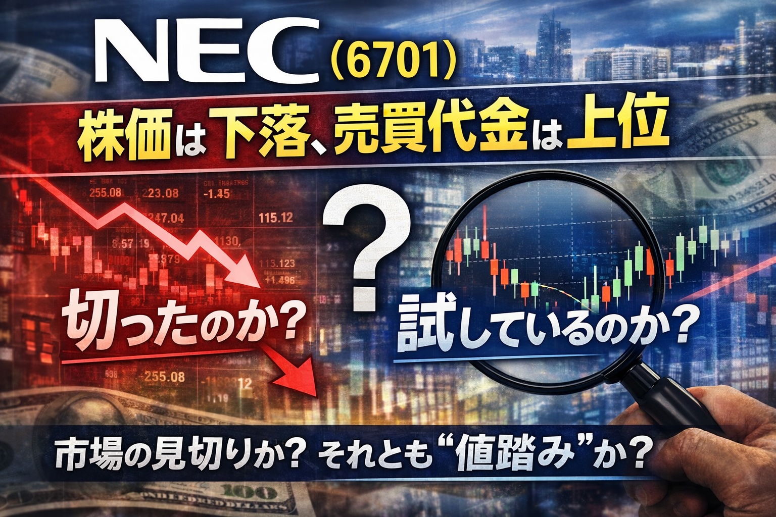 だが一方で、売買代金上位に顔を出し、参加者の出入り(回転)が止まらない。この「価格と回転のねじれ」こそが、今週NECが“相場の中心そのものではないが、相場が無視できない場所”にいる理由だ。