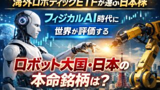 日本株 ー海外ロボティックETFが選んだ日本株ーフィジカルAI時代に世界が評価する「ロボット大国・日本」の本命銘柄とは? 海外ロボティックETF(BOTZ・ROBO)が選ぶ日本株を徹底解説。フィジカルAI時代に世界が評価するロボット銘柄の本命企業と投資視点をわかりやすく紹介。 2026.01.14 日本株